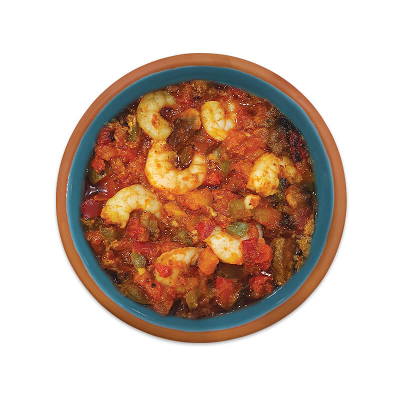 Temizlenmiş, soyulmuş, şişlere geçirilmiş ve dondurulmuş Jumbo Karides Eti (Penaeus vannamei) (%80), baharat, tuz, sıvı yağ, su (glaze oranı %20).
