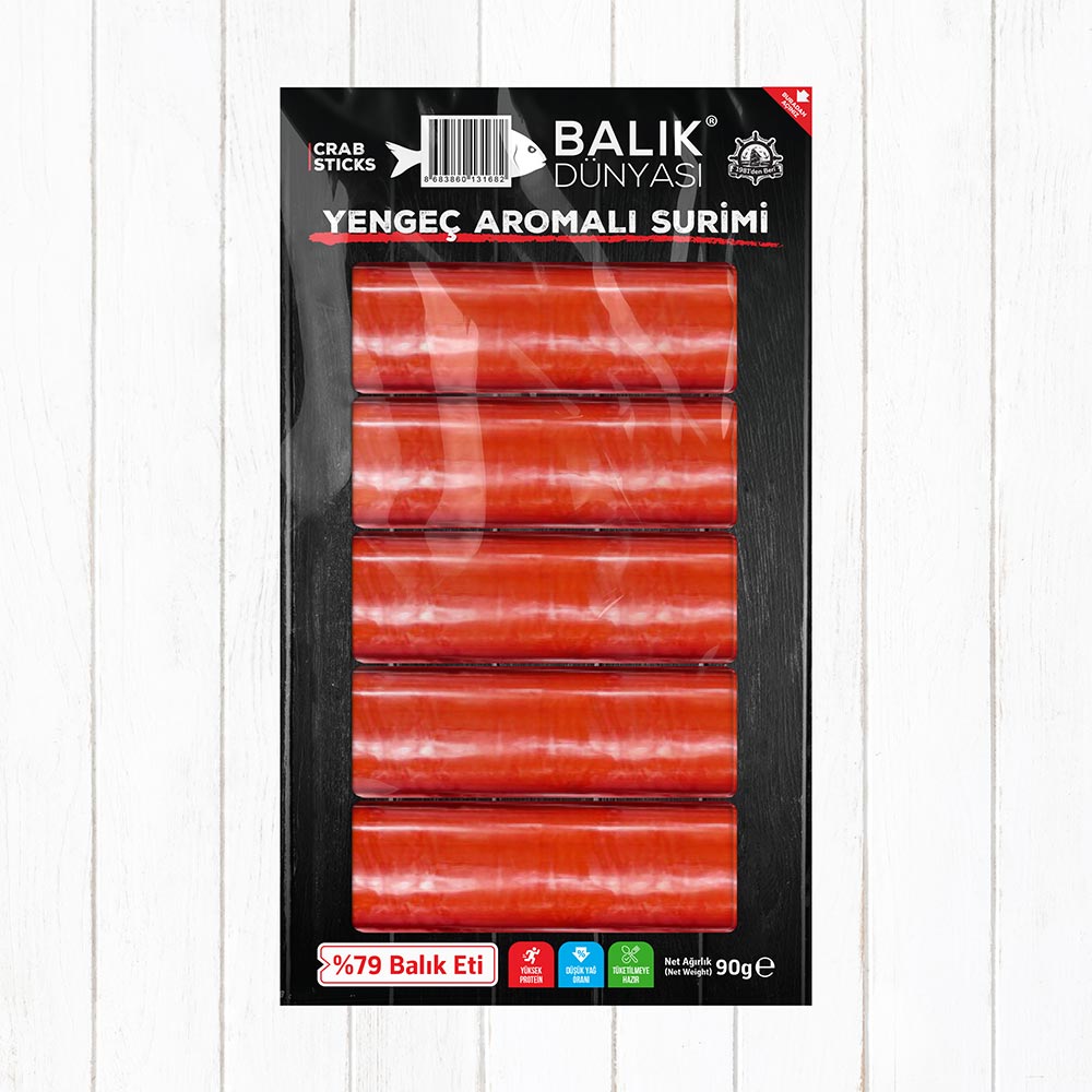 Surimi %79,05, Balık Eti, Şeker, D-Sorbitol, Asit Düzenleyici, Sorgum Nişastası, Tapyoka Nişastası Rafine Tuz, Şeker, Yengeç Ekstraktı, Baharat, Soya Yağı, Sodyum L-Glutamat ( Lezzet Arttırıcı), Kalsiyum Karbonat, Aktif Buğday Gluteni, Glisin, Kurutulmuş Albümin, İzole Soya Proteini, Asit Düzenleyici ( Sodyum Pirofosfat, Sodyum Polifosfat), Glucono-Delta Lakton, Yengeç Aroması (Sentetik Aroma), Karragenan, Baharat Solüsyonu-H, Kırmız Renklendirici-DW (Kırmızı Ekstrakt Rengi), MonascusRed-B (Monascuspigment)